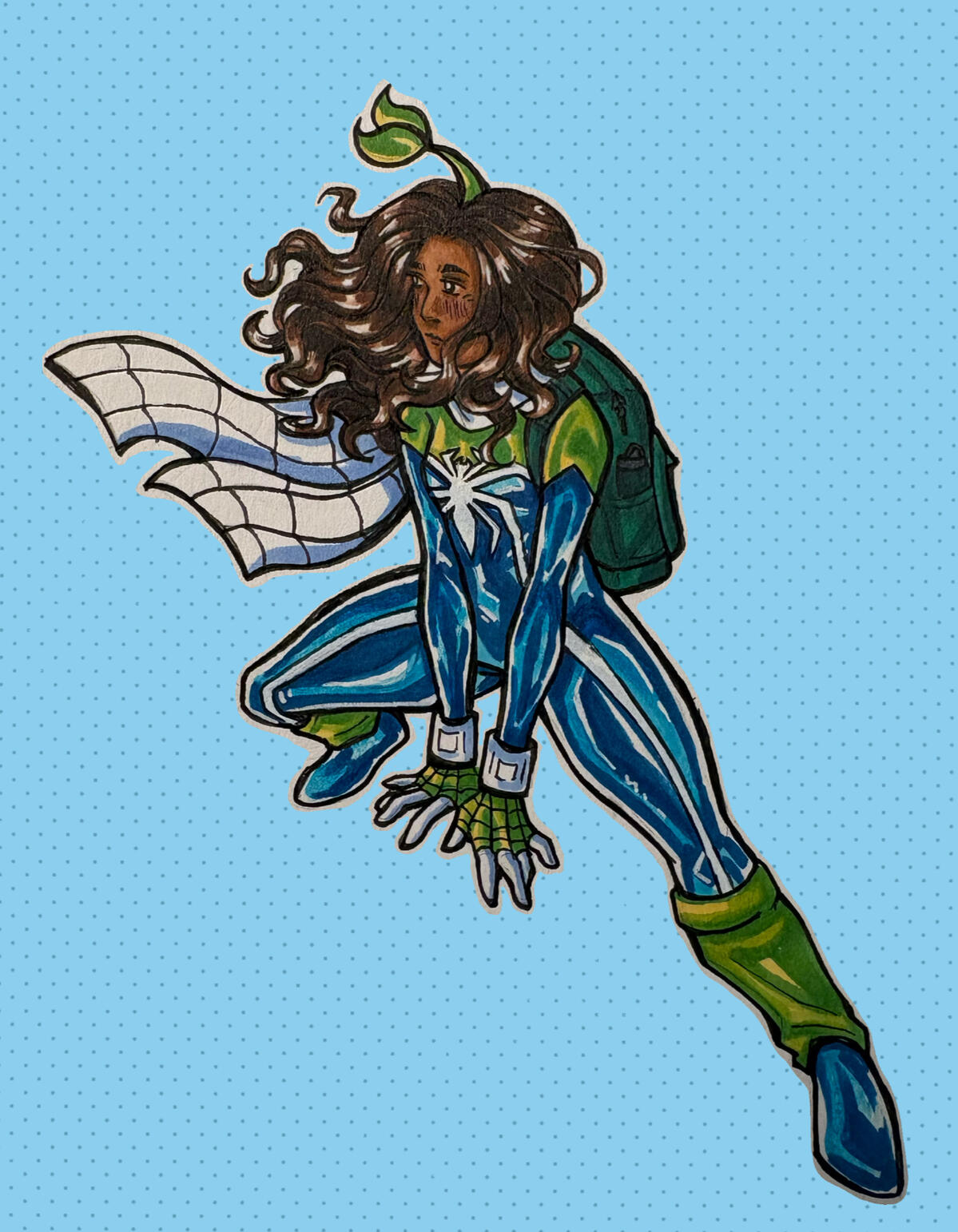 Drawing is incredibly therapeutic and a fantastic way to express oneself. My drawings range from fanart of my interests to exploring my own identity. You'll notice that there's a great deal of Spider-Man related art, many of which is my own Spidersona—Spider-Sprout! She's plastered all over this website haha.